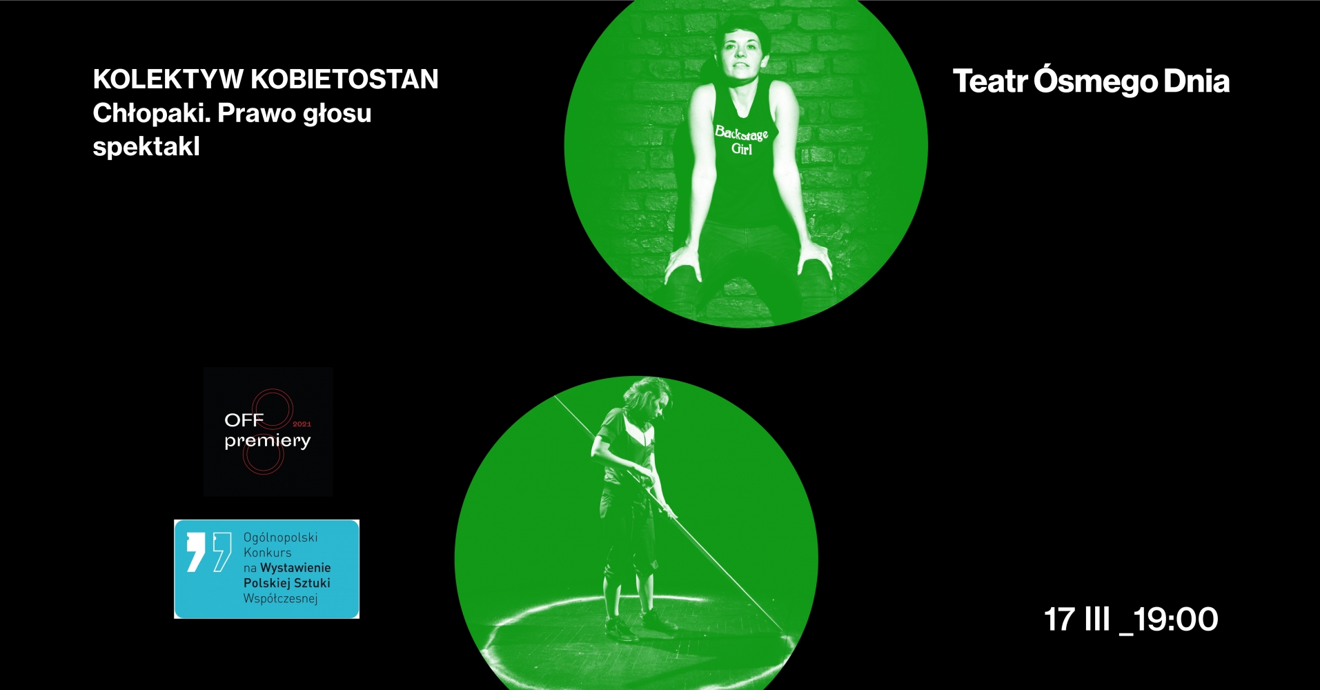 „Chłopaki. Prawo głosu” to najnowszy projekt wrocławskiego Kolektywu Kobietostan. Artystki teatralne i performerki Agnieszka Bresler, Martyna Dębowska i Iwona Konecka podejmują w nim temat prowadzonej przez siebie w zakładach karnych pracy teatralnej wokół konstruktu płci. Wykorzystując formę anamorficznego* koncertu performatywnego i scenicznego dokumentu, wyprowadzają język na skraj, a własne doświadczenie na powierzchnię. Do kolektywnej pracy nad tym przedsięwzięciem zaprosiły twórczynię interdyscyplinarną Weronikę Fibich, w zasady kapeli wpisując płynność, dobrostan i afirmację bałaganu.