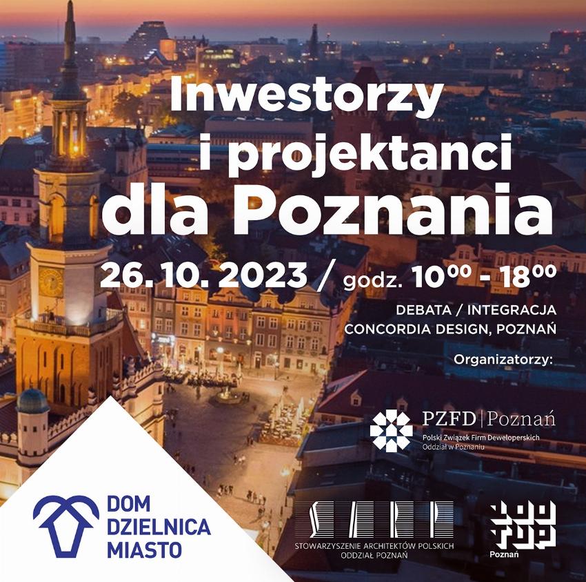 Już 26 października 2023 roku odbędzie się pierwsza edycja konferencji „Dom, dzielnica, miasto”. Podtytuł "Inwestorzy i projektanci dla Poznania" wskazuje, że do udziału w wydarzeniu zaproszono podmioty kształtujące lokalny rynek nieruchomości. Konferencja ma skłonić do dyskusji na temat planowania i realizacji inwestycji wśród środowiska urbanistów, architektów i inwestorów, a także zaproszonych gości.
