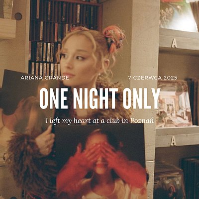 ONE NIGHT ONLY | Ariana Grande Party to nie zwykła impreza, na której kupisz drinka, pokręcisz się po parkiecie i wyjdziesz do domu jak gdyby nigdy nic. To przeżycie jedno na milion. Doświadcz magii w Poznaniu, gdzie setlista jest ułożona w sposób, jakiego się nie spodziewasz. Każde przejście jest dopracowane, kolejność opowiada historię, a wystrój krzyczy „Daj z siebie wszystko przez najbliższe 5 godzin! Krzycz, śpiewaj, skacz, płacz, poznawaj nowych fanów Ariany z całej Polski zgromadzonych tu - w Poznaniu!”