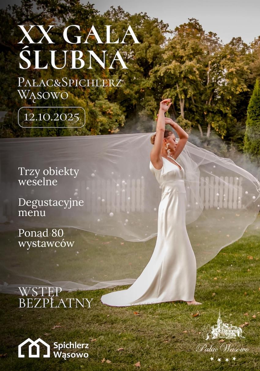 Zapraszamy na XX Galę Ślubną w Pałacu i Spichlerzu Wąsowo, która odbędzie się 12 października w godzinach 12:00–17:00.