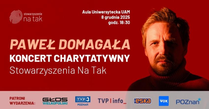 8 grudnia 2025 roku w Auli Uniwersytetu im. Adama Mickiewicza w Poznaniu wystąpi Paweł Domagała - ceniony artysta, znany z piosenek takich jak "Weź nie pytaj" czy "Wystarczę ja". Tym razem jego muzyka połączy się z wyjątkowym celem - cały dochód z koncertu zostanie przekazany na uruchomienie nowego rodzinnego domu pomocy dla osób z niepełnosprawnością intelektualną, które wymagają nieustannej opieki.