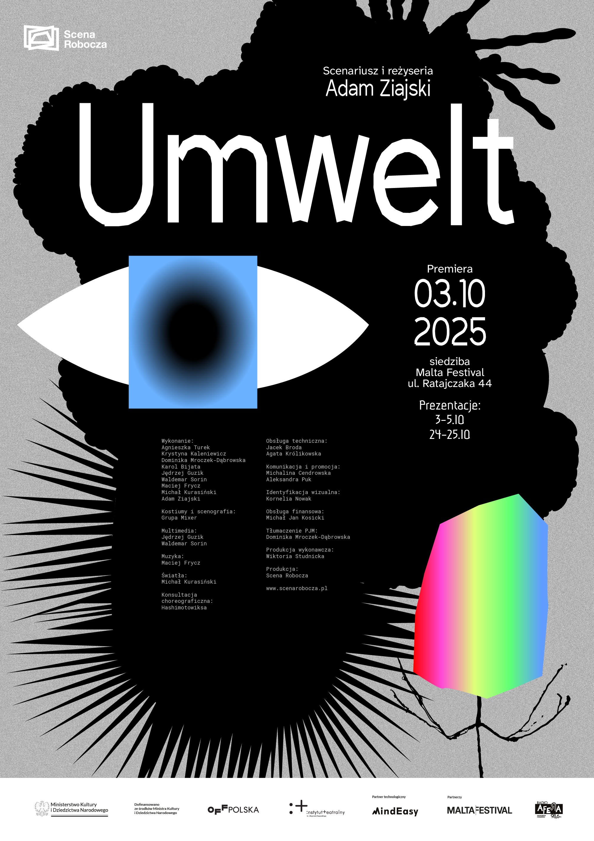 „Umwelt” w reż. Adama Ziajskiego to projekt eksplorujący granice naszej percepcji za pomocą biofeedbacku. Tytułowy termin w języku niemieckim oznacza „wokół-świat” – środowisko, które nie tyle nas otacza, ile zawiera to, co dla nas istotne i rzeczywiście dostrzegalne. To subiektywny świat zmysłów, reakcji i znaczeń.