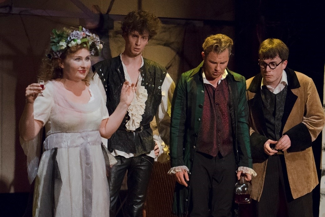 „A taki miał być przyjemny nastrój po podwieczorku w małym, zacisznym, ukrytym w drzewach dworku” Spektakl w iście absurdalnym i witkacowskim klimacie.