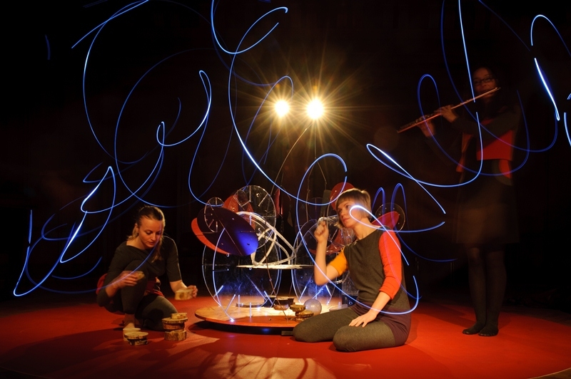 Podczas przedstawienia odkrywane dźwięki żywiołów łączą się ze słowem i akompaniamentem fletu poprzecznego.
