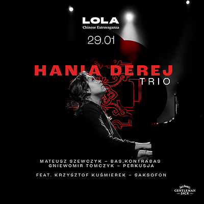 Hania Derej TRIO w LOLI!Nowy projekt kompozytorki i pianistki, w którym artystka łączy swoje wcześniejsze zainteresowania i na bazie nowych doświadczeń tworzy coś nowego. Muzyka tria opiera się elektroniczym, jazzowym brzmieniu z elementami neoklasyki.