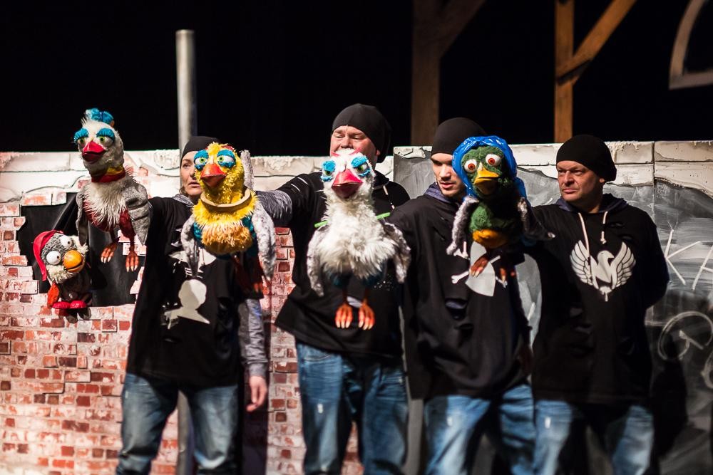 Od zawsze każdym miejskim podwórkiem rządzi jakaś Banda gołębi. Waleczne, odważne, honorowe, co chwila wznoszą dumne okrzyki: "Rządzą gołębie, zawsze gołębie, tylko gołębie!" Przerywają tylko wtedy, gdy ktoś sypnie bułką... Albo gdy na rewir wkroczy ich odwieczny wróg - kot. I właśnie kot rozbił Bandę Zbigniewa: Pożarł gołębia Janusza. Nikt tego nie widział. Nie zostały ślady. Dowodów brak. Ale gołębie nie potrzebują dowodów, by się zemścić. Na szczęście w odpowiednim (a może najmniej odpowiednim?) momencie na podwórko wkracza Przemek, samotny, młody wróbel. Przemek jest dobroduszny i niewinny. Słabeusz bez własnej Zgrai. Nigdzie nie pasuje i nie ma prawa głosu, bo przecież nie jest gołębiem! A jednak jego dobre serce i wiara w ptaki pozwalają mu uchronić Bandę przed katastrofą i dociec prawdy. Przemek raz na zawsze zmieni zasady i udowodni, że warto iść przez życie razem, dziób w dziób. Bo przecież ptak to ptak, a każdy problem da się rozwiązać pokojowo... albo odkryć, że tak naprawdę problemu nie ma!