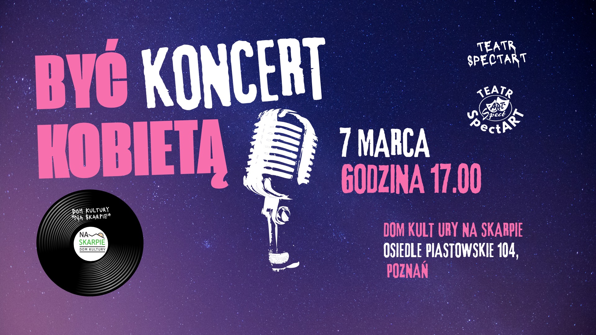 Data: 7 marca Godzina: 17:00 Miejsce: Dom Kultury Na SkarpieOsiedle Piastowskie 104, Poznań