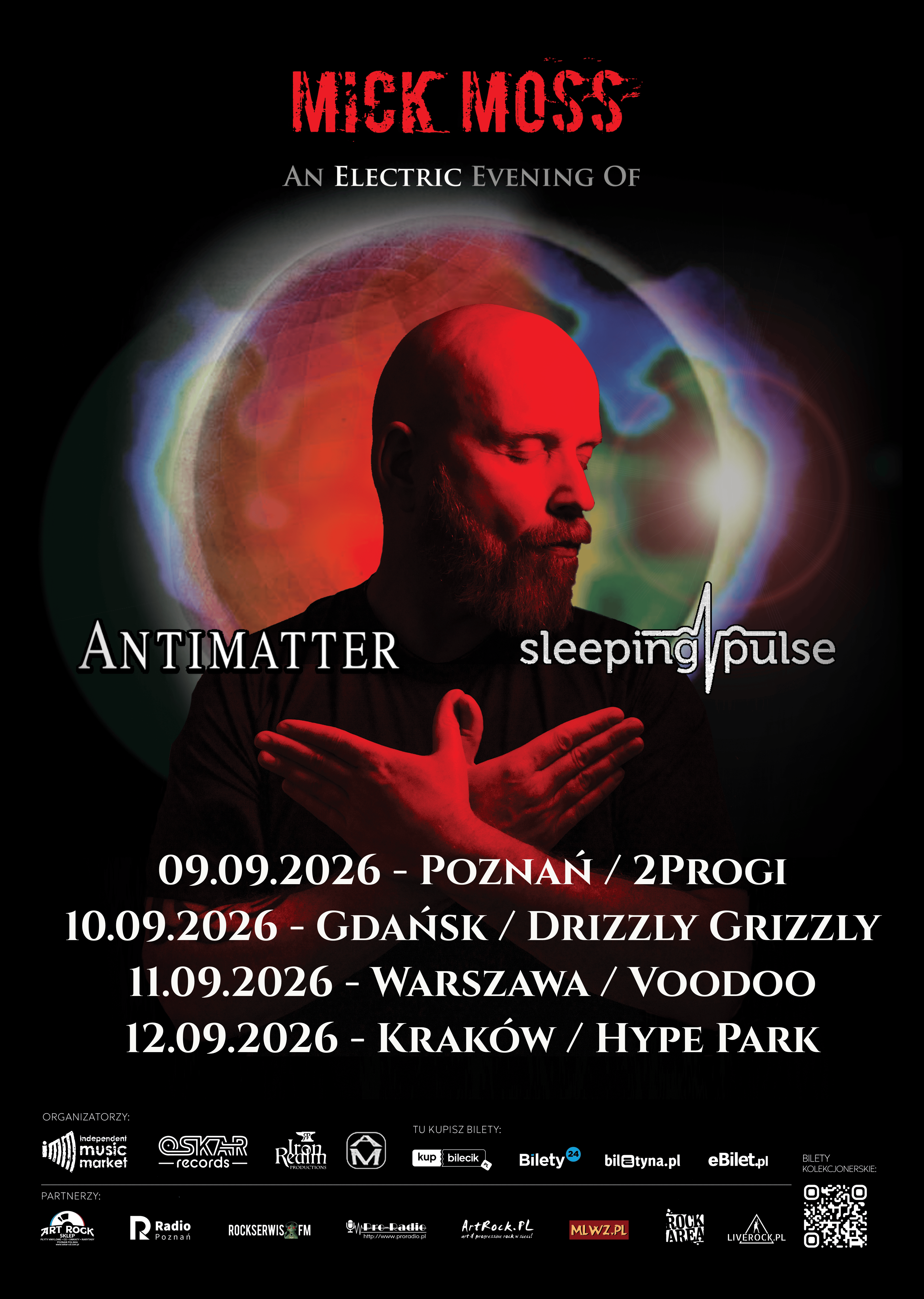 Zespołu Antimatter nie trzeba przedstawiać polskim fanom progressive, darkwave i art rocka. Tej jesieni Mick Moss, lider Antimatter, zagra specjalną serię podwójnych koncertów „An Electric Evening of Sleeping Pulse & Antimatter”. W programie znajdą się dwa oddzielne sety: jeden poświęcony Antimatter, z klasycznymi utworami z a drugi projektowi Sleeping Pulse.