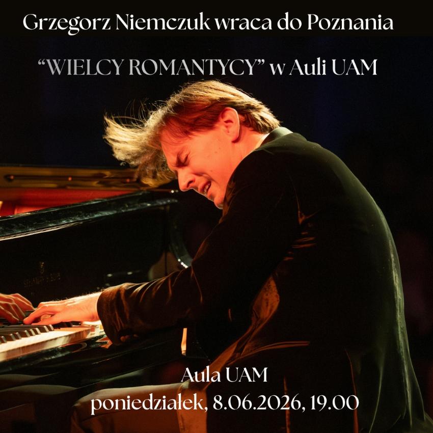 Po ubiegłorocznym, spektakularnym debiucie w Auli UAM Grzegorz Niemczuk ponownie zagra w Poznaniu. Niezwykły pianista i ulubieniec poznańskiej publiczności wraca z fascynującym programem.