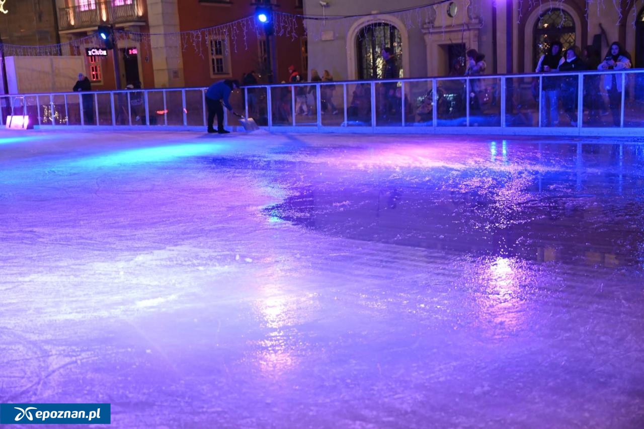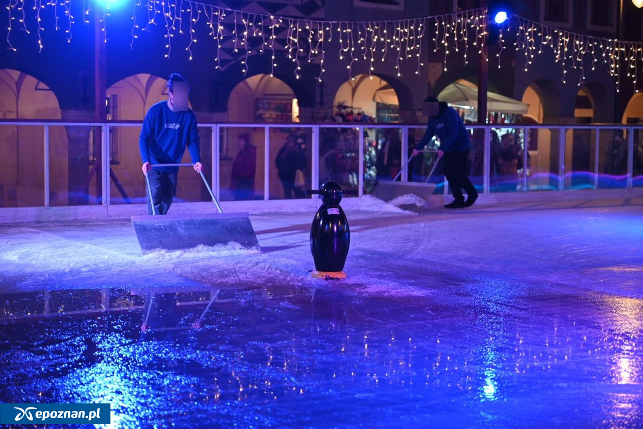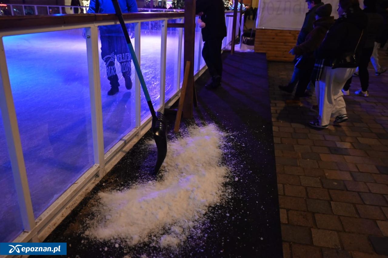 "Będzie specjalna procedura uzupełniania lodowiska i mam nadzieję, że dzisiaj ma być już chłodniej, ma być nawet zero. Wiadomo, jest trochę mokro, ale nie jest nam to groźne. My staramy się, by to lodowisko na Starym Rynku jako taka pocztówka miasta Poznania było cały czas czynne"- mówi dziennikarzom Anna Dorna z Becker Eventservice.