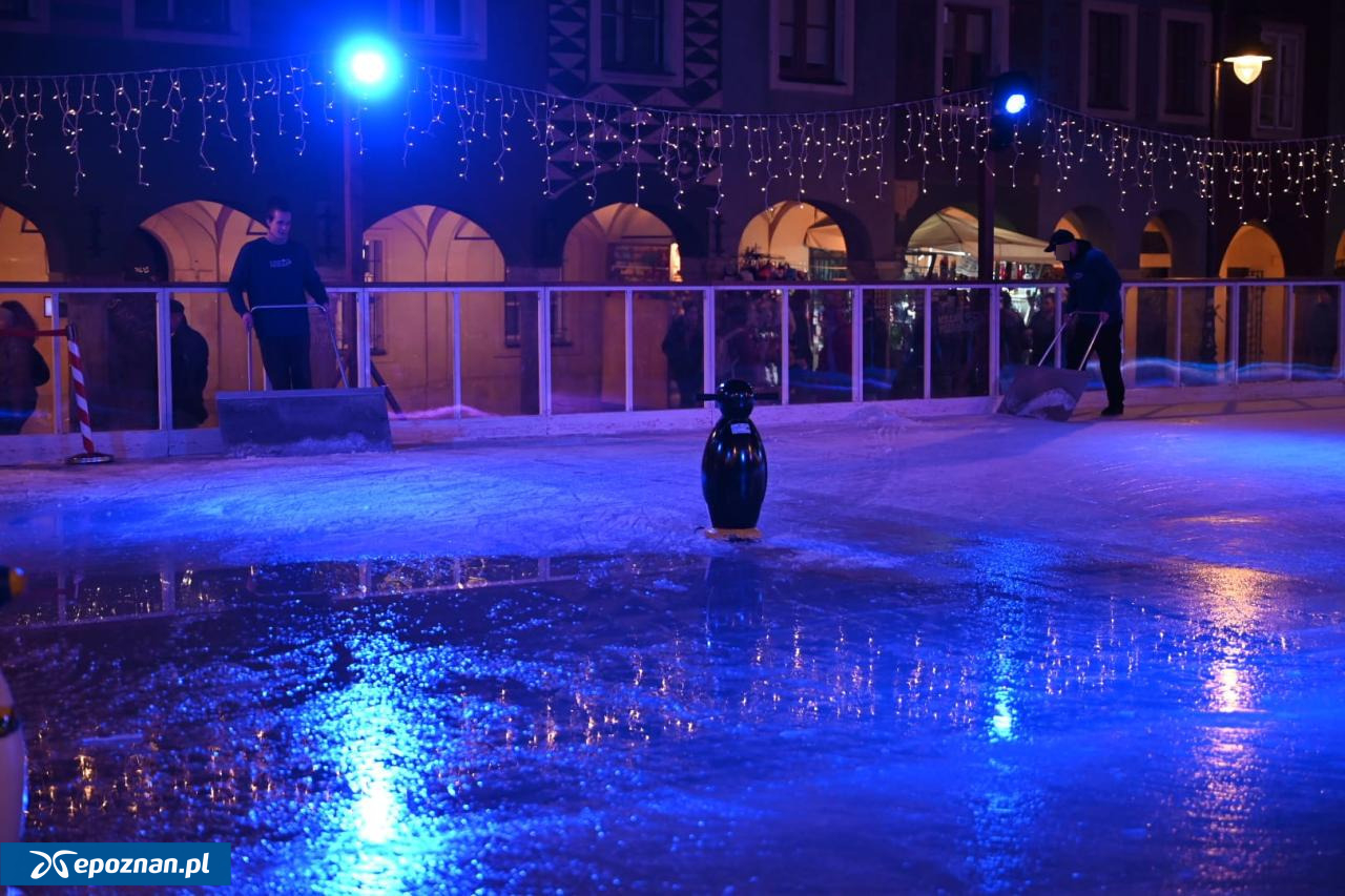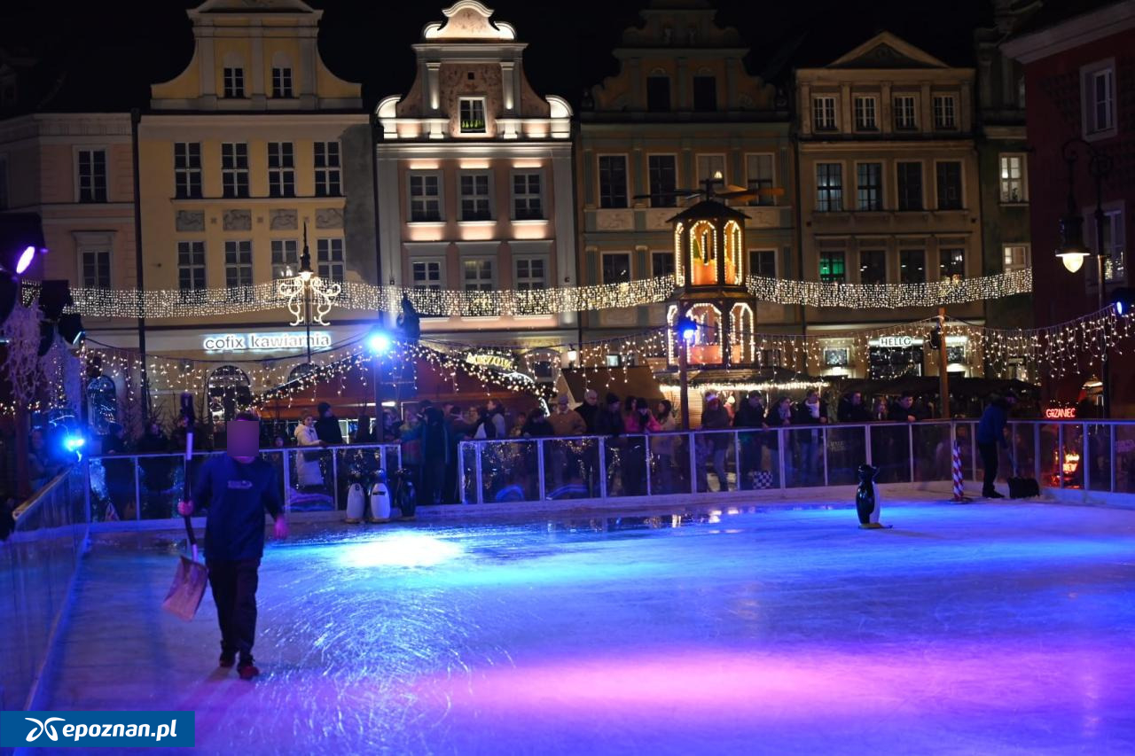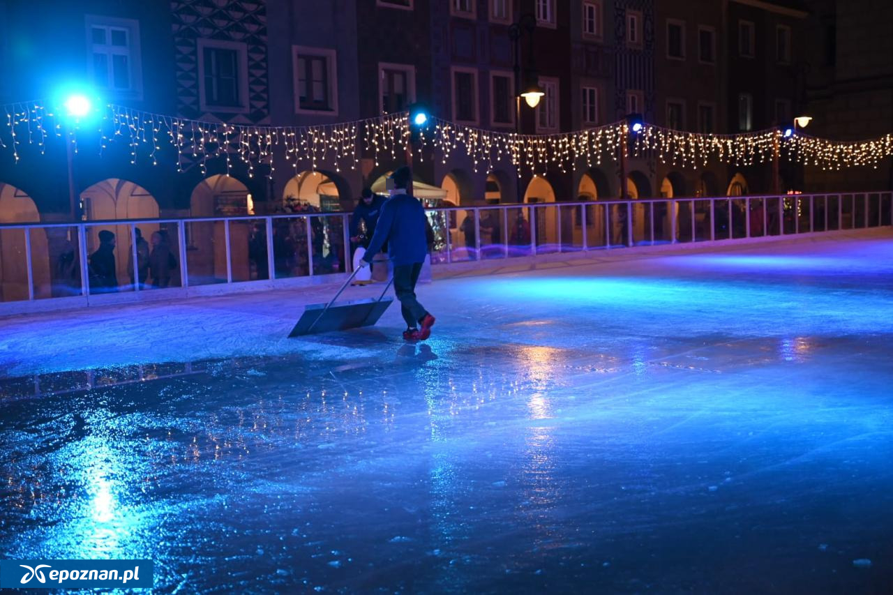 "Będzie specjalna procedura uzupełniania lodowiska i mam nadzieję, że dzisiaj ma być już chłodniej, ma być nawet zero. Wiadomo, jest trochę mokro, ale nie jest nam to groźne. My staramy się, by to lodowisko na Starym Rynku jako taka pocztówka miasta Poznania było cały czas czynne"- mówi dziennikarzom Anna Dorna z Becker Eventservice.