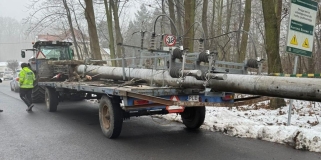 Ślisko, mgła, a na rozsypującej się naczepie długi słup bez zabezpieczenia