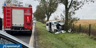 Wypadek w powiecie poznańskim. Kierowca samochodu wjechał w drzewo