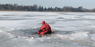 Wjechał rowerem na zamarznięte jezioro. Musieli go ratować strażacy