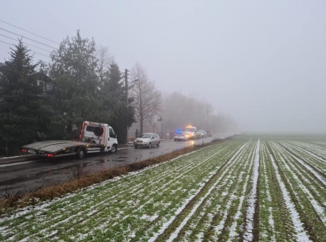 Szklanka na drodze! Policja wprowadziła blokadę. Duże utrudnienia i korki. Samochody nie utrzymują się na nawierzchni