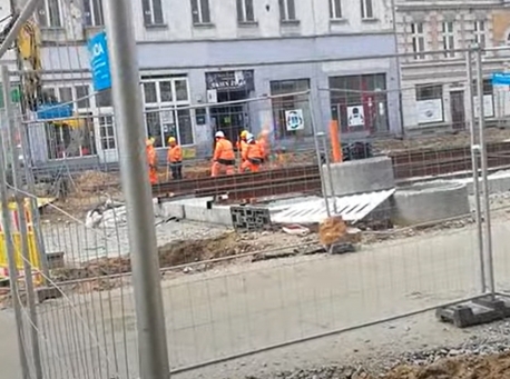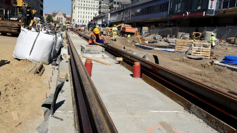 Przebudowa ul. Święty Marcin. "Rozpoczął się już montaż szyn, po których jesienią pojadą tramwaje"