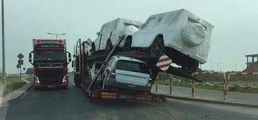 Jasin: laweta z autami wartymi setki tysięcy złotych "złożyła się" na zakręcie