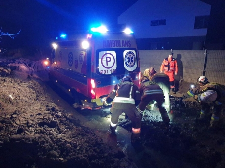 Karetka jechała do potrzebującego, utknęła w błocie. W podpoznańskiej miejscowości