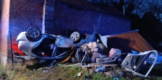 Region. Wjechał w budynek osobówką, okazało się, że był pijany