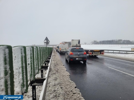 Wieczorne zderzenie dwóch pojazdów na drodze krajowej pod Poznaniem. Kierowcy stali w korku
