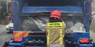 Strażacy wracając z akcji trafili na pożar w poznańskiej śmieciarce. Paliło się coś, czego w ogóle nie powinno w niej być
