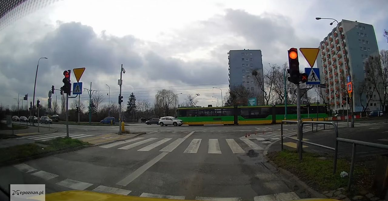Hetmańska / Dmowskiego: skręcała na zakazie, wjechała wprost pod tramwaj. Zobacz nagranie