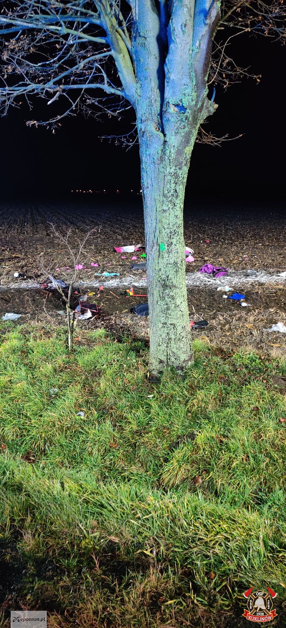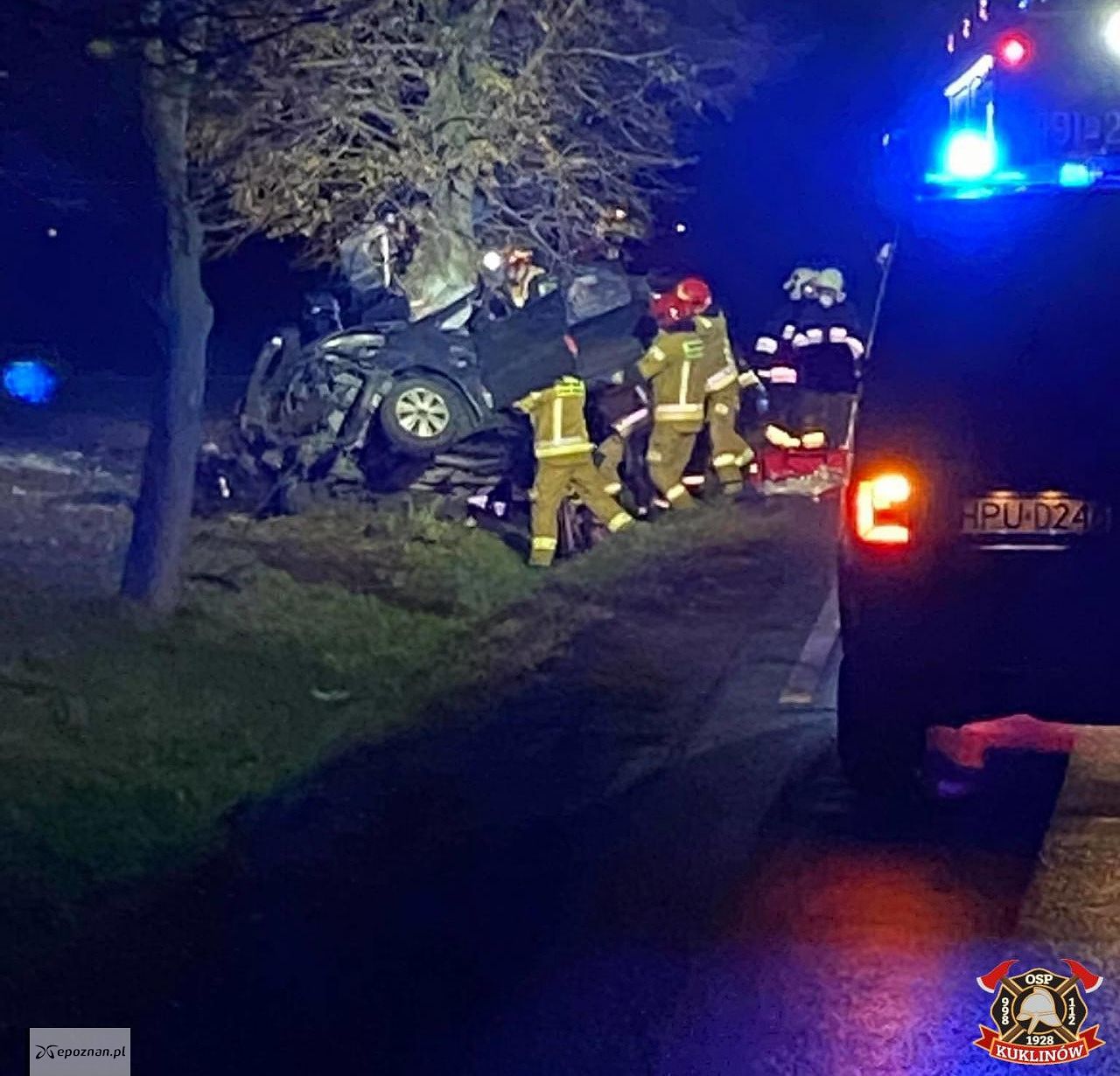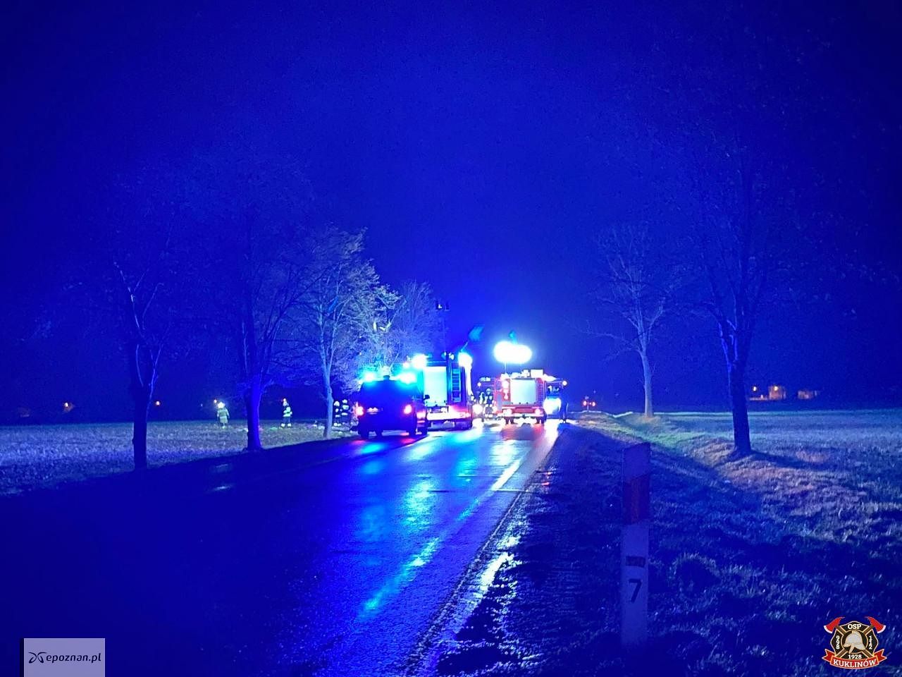 Po godzinie 2 w nocy w miejscowości Kuklinów samochód osobowy wypadł z drogi krajowej numer 36 i uderzył w drzewo.