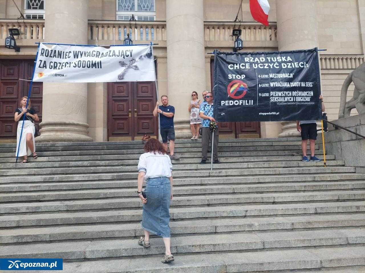 Na uczestników tuż przy Teatrze Wielkim czekała kontrmanifestacja. Protestujący pojawili się z transparentami, odmawiali różaniec. Miejsce zabezpieczali policjanci. Wiadomo, że doszło do przepychanek słownych.