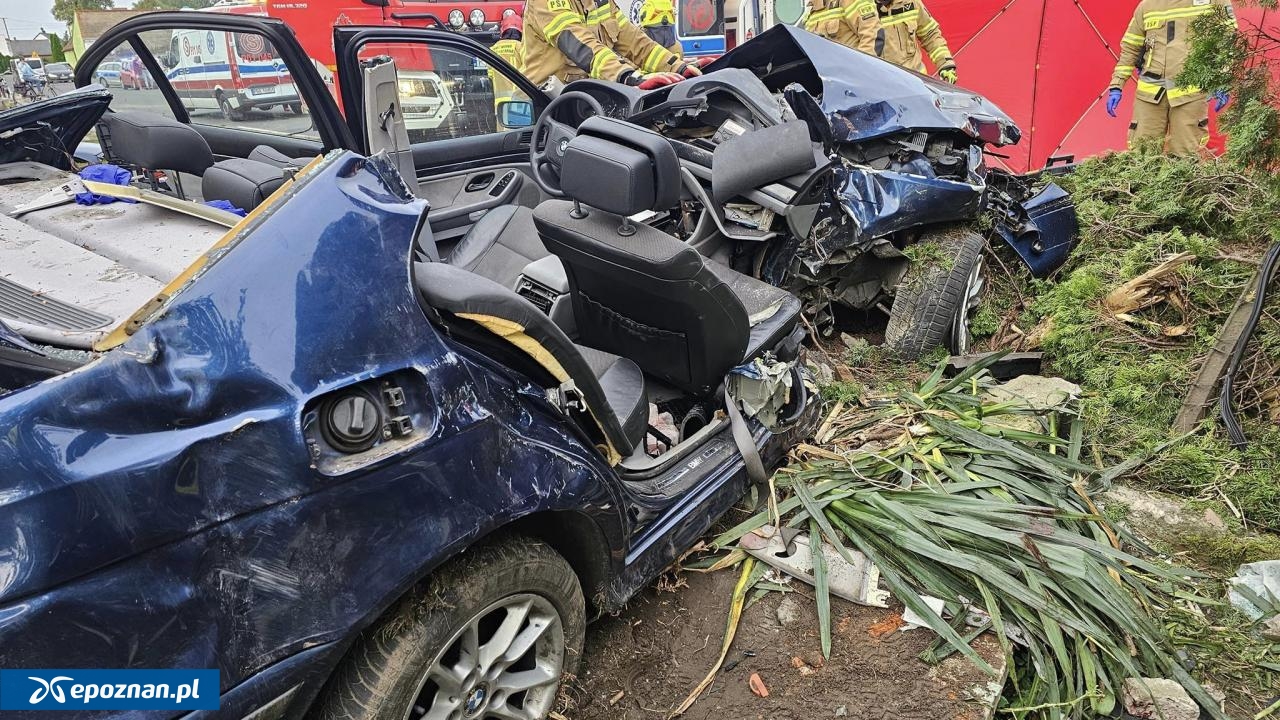 Poważny wypadek w regionie. BMW wylądowało w płocie, zakleszczony pasażer