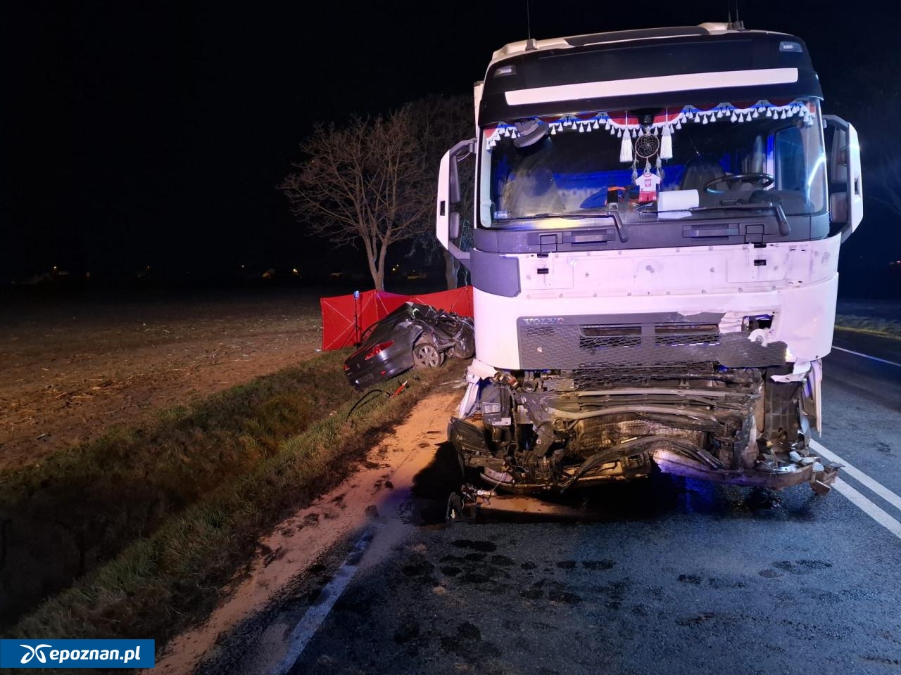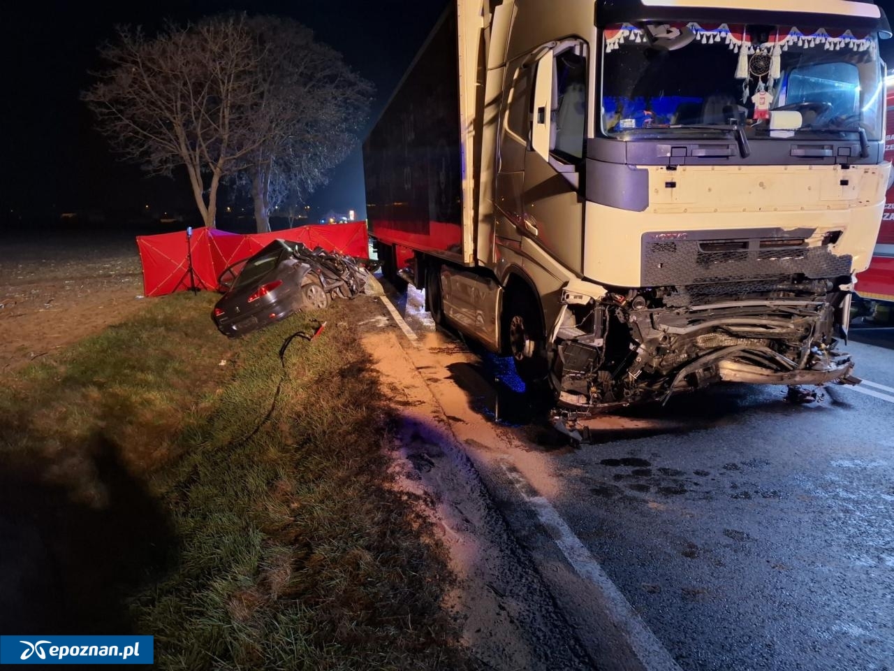 "Jak wstępnie ustalono, kierujący samochodem osobowym marki Peugeot 607, jadąc z Pleszewa w kierunku Kotlina, z nieustalonych przyczyn zjechał na przeciwległy pas gdzie uderzył w tył naczepy samochodu ciężarowego jadącego w kierunku Pleszewa. W wyniku uderzenia Peugeot obrócił się o 360 a następnie czołowo zderzył się z kolejnym samochodem ciężarowym jadącym w kierunku Pleszewa, a następnie wpadł do przydrożnego rowu" - relacjonuje asp. sztab. Agnieszka Zaworska oficer prasowy policji w Jarocinie.