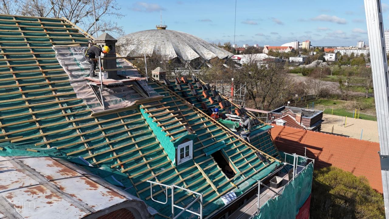 Zabytkowe budynki w sąsiedztwie Areny zyskują nowe dachy. Pojawia się na nich ceramiczna dachówka