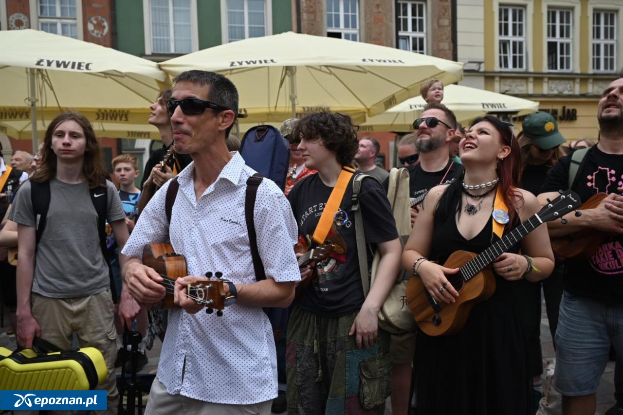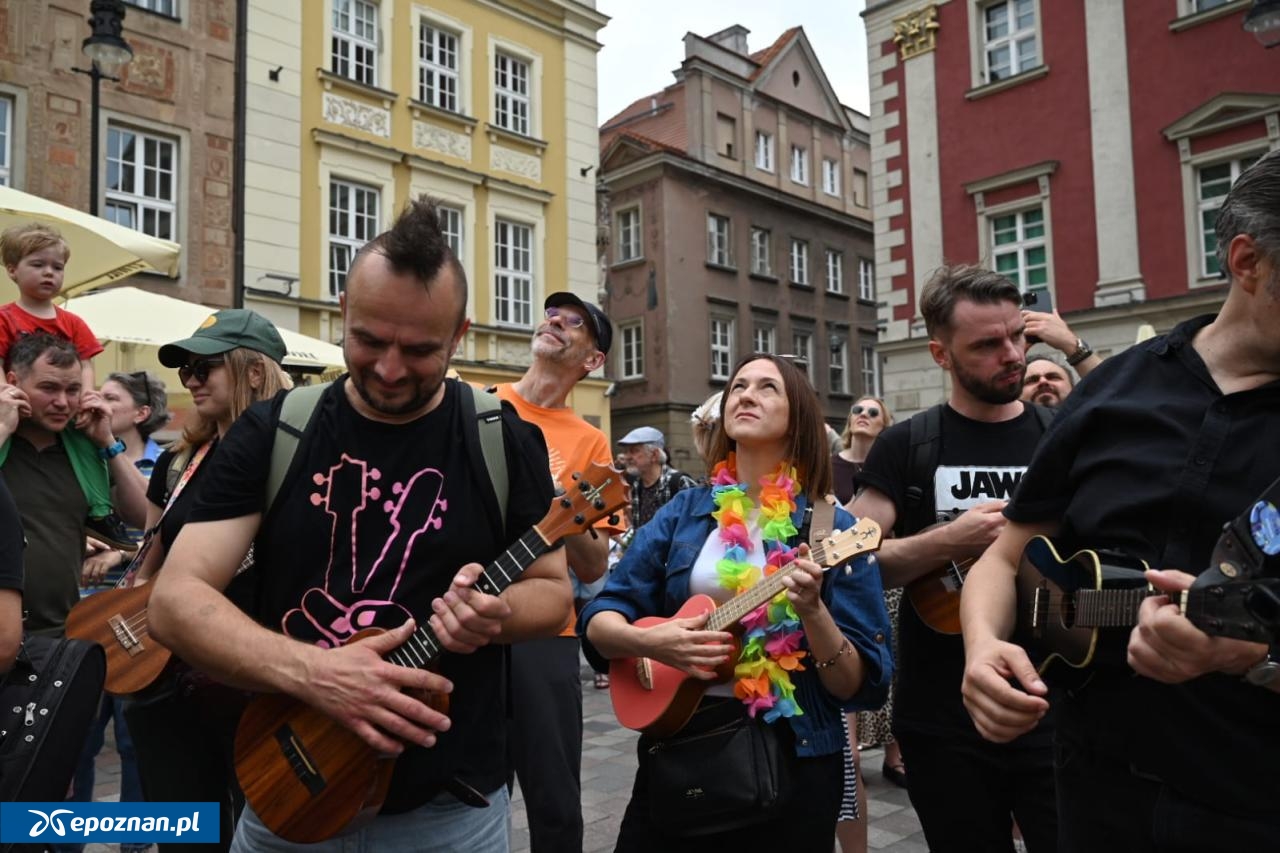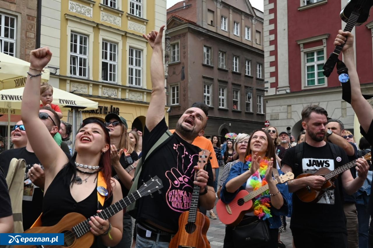 Poznań znów stał się stolicą ukulele. Jedną z atrakcji przygotowanych przez organizatorów wydarzenia "Cały Poznań Ukulele" był specjalny hejnał, który w sobotę w samo południe zabrzmiał z poznańskiej wieży ratuszowej.