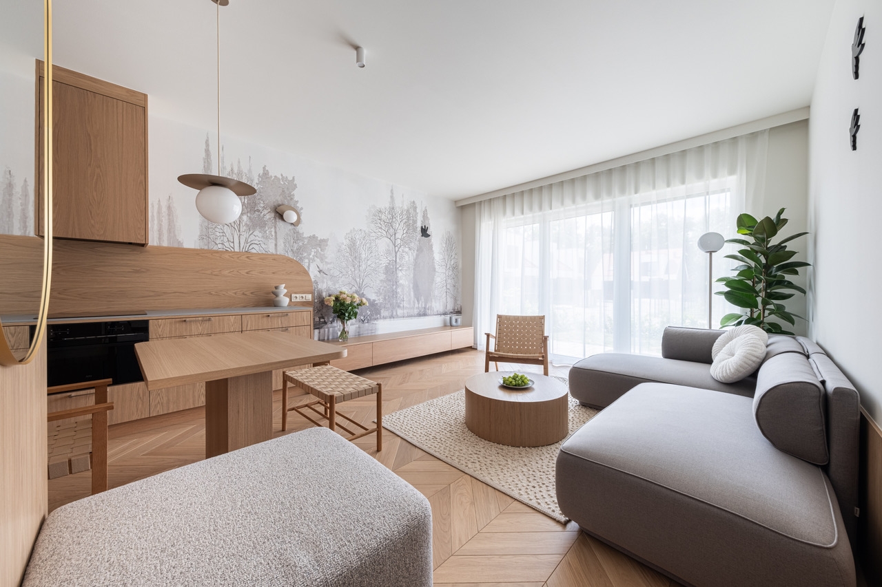 Miłośników aranżacji wnętrz z pewnością zaciekawi styl w jakim lokal pokazowy został urządzony. Można go określić jako minimalizm z elementami naturalnymi (japandi). Projekt zatem stanowi połączenie skandynawskiej prostoty i japońskiej elegancji. - Mieszkanie zaprojektowane zostało zgodnie z nurtem powrotu do natury. Dużo tu prawdziwego drewna i materiałów miękkich. Królują kolory ziemi, a zestawione produkty nie krzyczą, nie kontrastują z otoczeniem. Projekt z pewnością przypadnie do gustu osobom ceniącym funkcjonalne rozwiązania i kontakt z zielenią - mówi Lidia Ostrowska, autorka projektu aranżacji wnętrz. To właśnie zieleń jest jednym z kluczowych atutów Folwarku Jankowice. Deweloper aranżując przestrzeń osiedla wkomponował w nią liczne nasadzenia, w tym dość sporych rozmiarów drzewa. Ma to wprost korespondować z przylegającym do inwestycji 18-hektarowym pałacowym parkiem.