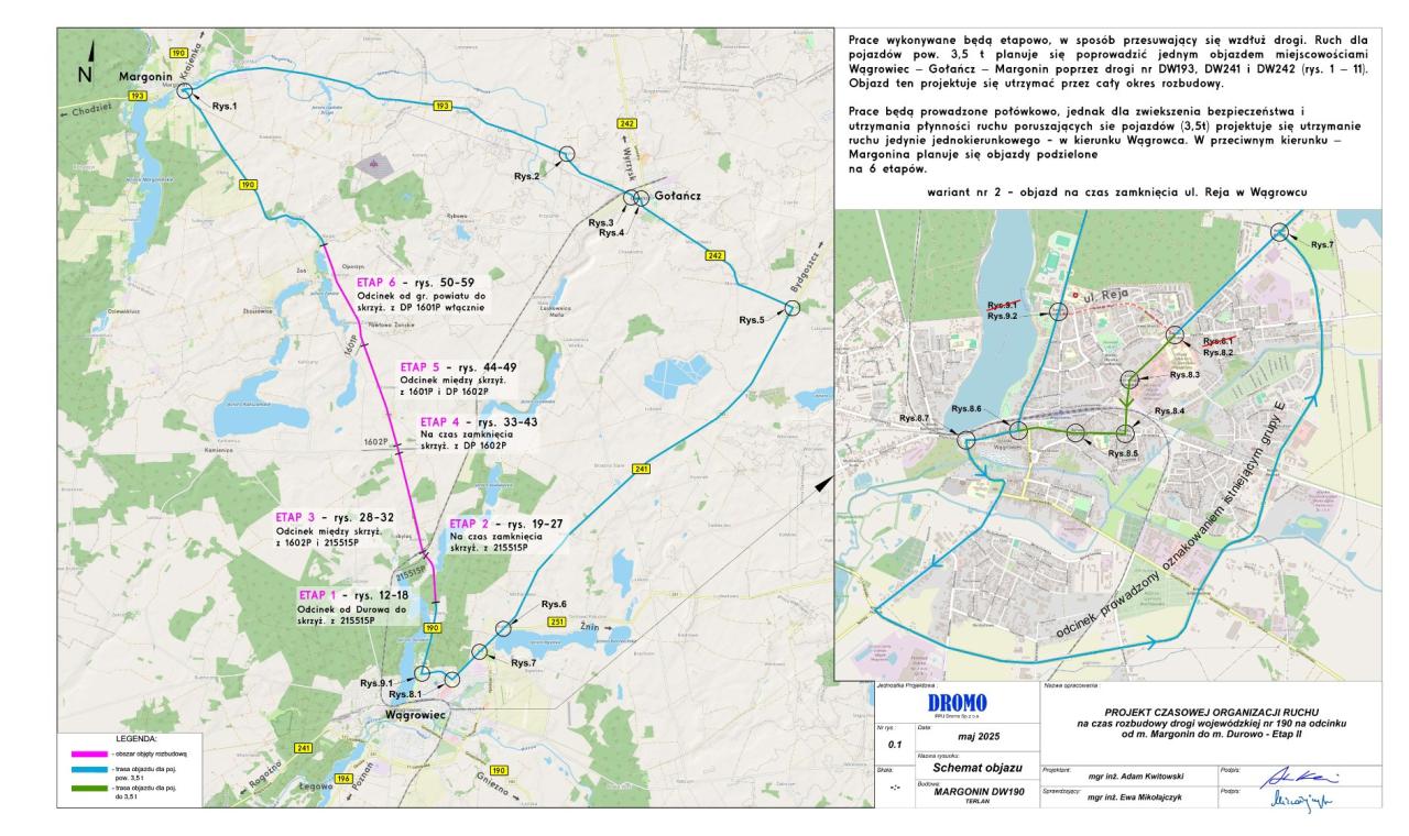 "Roboty będą prowadzone etapowo, w miarę postępu prac będą przesuwać się wzdłuż trasy. Ze względów bezpieczeństwa ruch zostanie utrzymany jednokierunkowo w stronę Wągrowca, a objazdy w kierunku Margonina zaplanowano lokalnymi drogami powiatowymi i gminnymi" - przekazano.