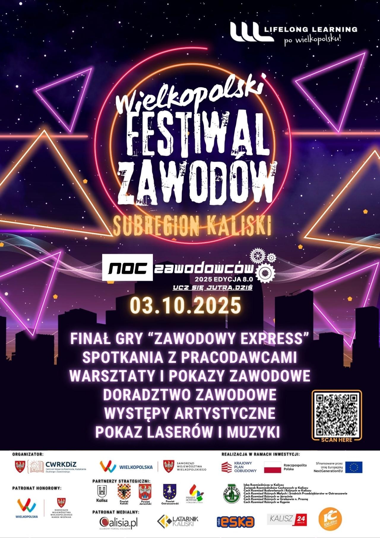 W ramach Festiwalu odbędzie się NOC ZAWODOWCÓW, zaplanowana na 3 października br. w pięciu lokalizacjach na terenie województwa wielkopolskiego. Tegoroczna edycja odbywa się pod hasłem wspólnym dla całego Festiwalu: "Ucz się jutra. Dziś". To już 8. edycja Nocy Zawodowców, która na stałe wpisała się w kalendarz wydarzeń regionalnych w Wielkopolsce.