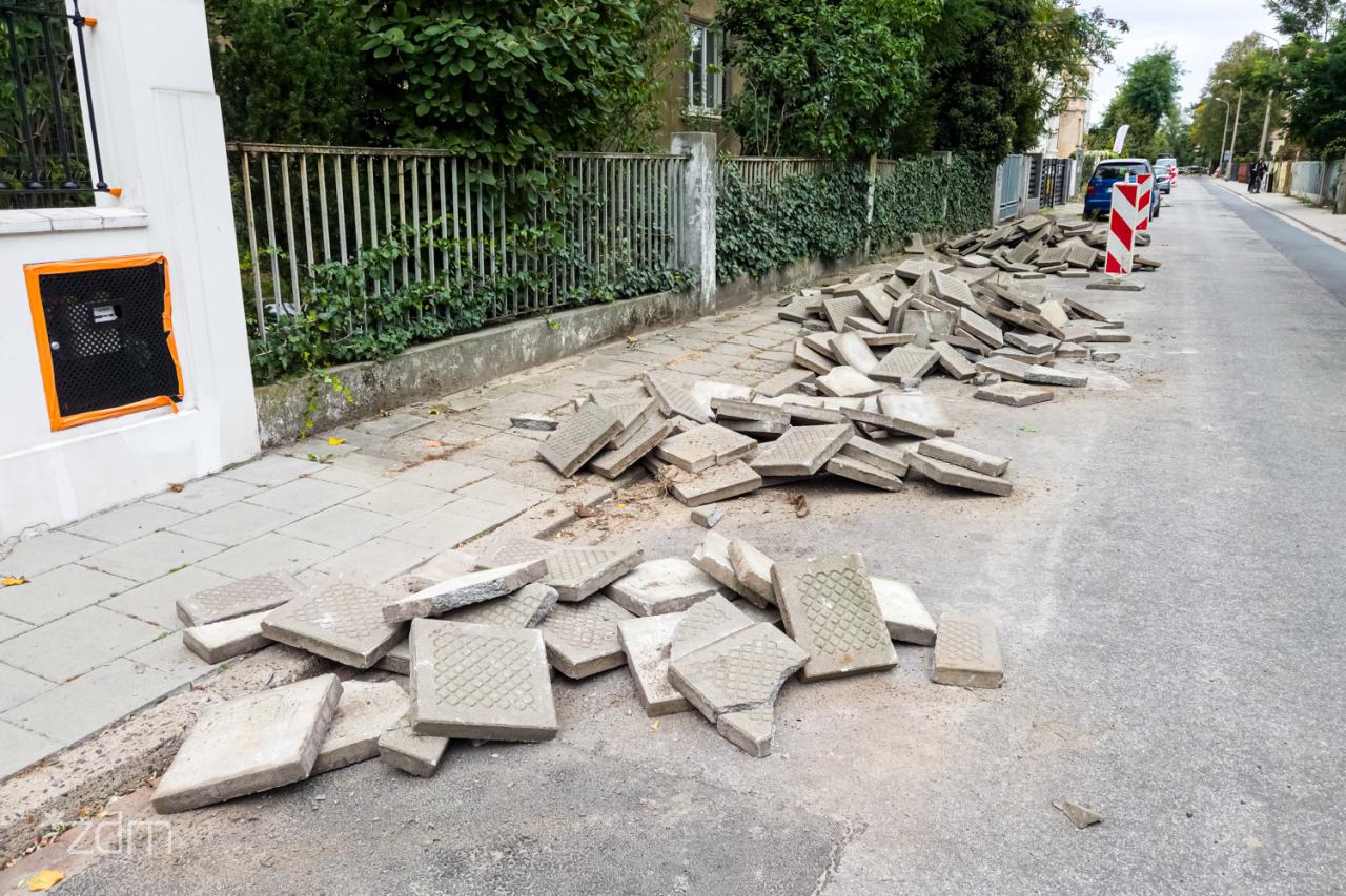 Rozbierają chodnik na jednej z poznańskich ulic. Jest apel do kierowców