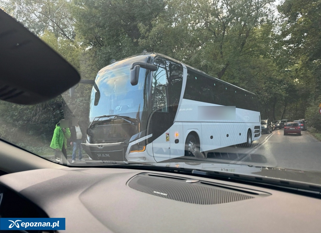 Ogromny korek na jednej z poznańskich ulic przez zepsuty autokar. "Fatalne miejsce na awarię"