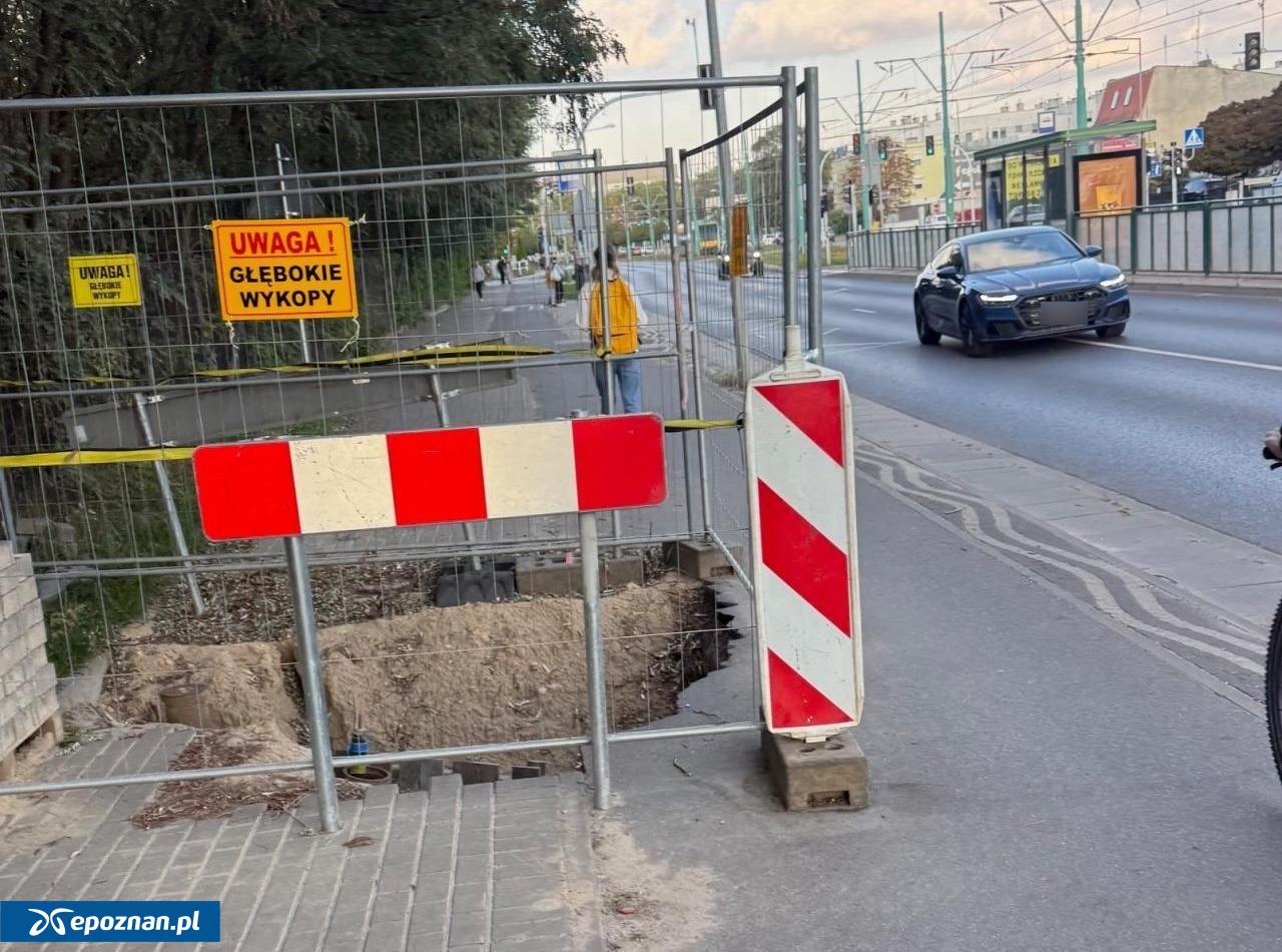 - Proszę o interwencję w sprawie rozkopanego chodnika / ścieżki rowerowej na ul. Grunwaldzkiej, tuż przed pętlą Budziszyńska. Status tej "inwestycji-remontu" nie zmienia się od tygodni, a stwarza realne zagrożenie - piesi wchodzący na ścieżkę rowerową itp. / rowerzyści nieustępujący pieszym itp. Przejeżdżam tam codziennie i nie przypominam sobie, by w ostatnich 30 dniach cokolwiek się tam zmieniło... Może czas wreszcie zasypać dziurę i udrożnić ścieżkę oraz chodnik, szczególnie wobec zbliżającego się 1 listopada - napisał do nas Zbyszko.