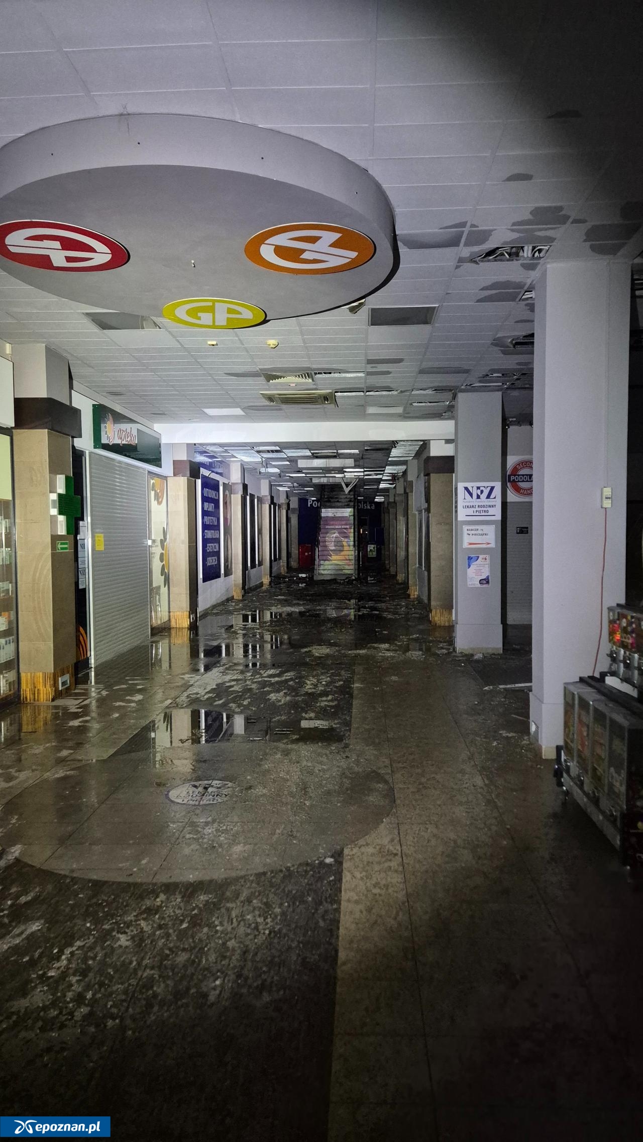 Galeria Podolany pozostaje nieczynna i, jak widać na zdjęciach, minie sporo czasu, zanim zostanie ponownie otwarta. Znajdują się tam m.in. punkt Poczty Polskiej, optyk, przychodnia lekarska czy pralnia. Informacji o tym, kiedy punkty zaczną działać, najlepiej szukać bezpośrednio u właścicieli punktów - chociażby w mediach społecznościowych.