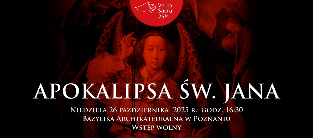 Fragmenty Apokalipsy św. Jana usłyszymy w interpretacji aktora Teatru Nowego w Poznaniu Andrzeja Lajborka. Przekład i komentarz przygotował o. prof. dr hab. Adam R. Sikora OFM, jeden z najwybitniejszych badaczy pism św. Jana, a zwłaszcza Apokalipsy. Oprawa muzyczna: Sołacki Chór Kameralny pod dyr. Marianny Lewickiej. Wstęp wolny.