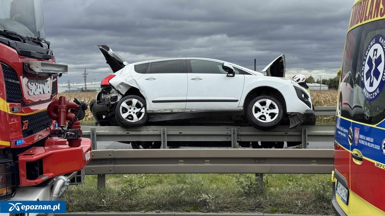 Wypadek w regionie. Jedno z aut zawisło na barierkach