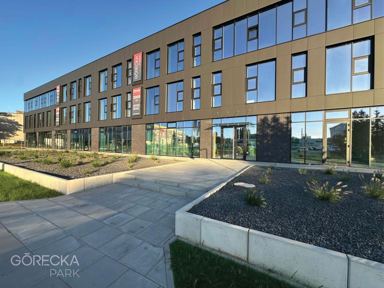 Górecka Park to budynek o powierzchni około 3 000 m², zlokalizowany na działce liczącej ponad 5 000 m². Obiekt składa się z trzech kondygnacji nadziemnych, a jego architektura łączy nowoczesną estetykę z funkcjonalnością i troską o środowisko.