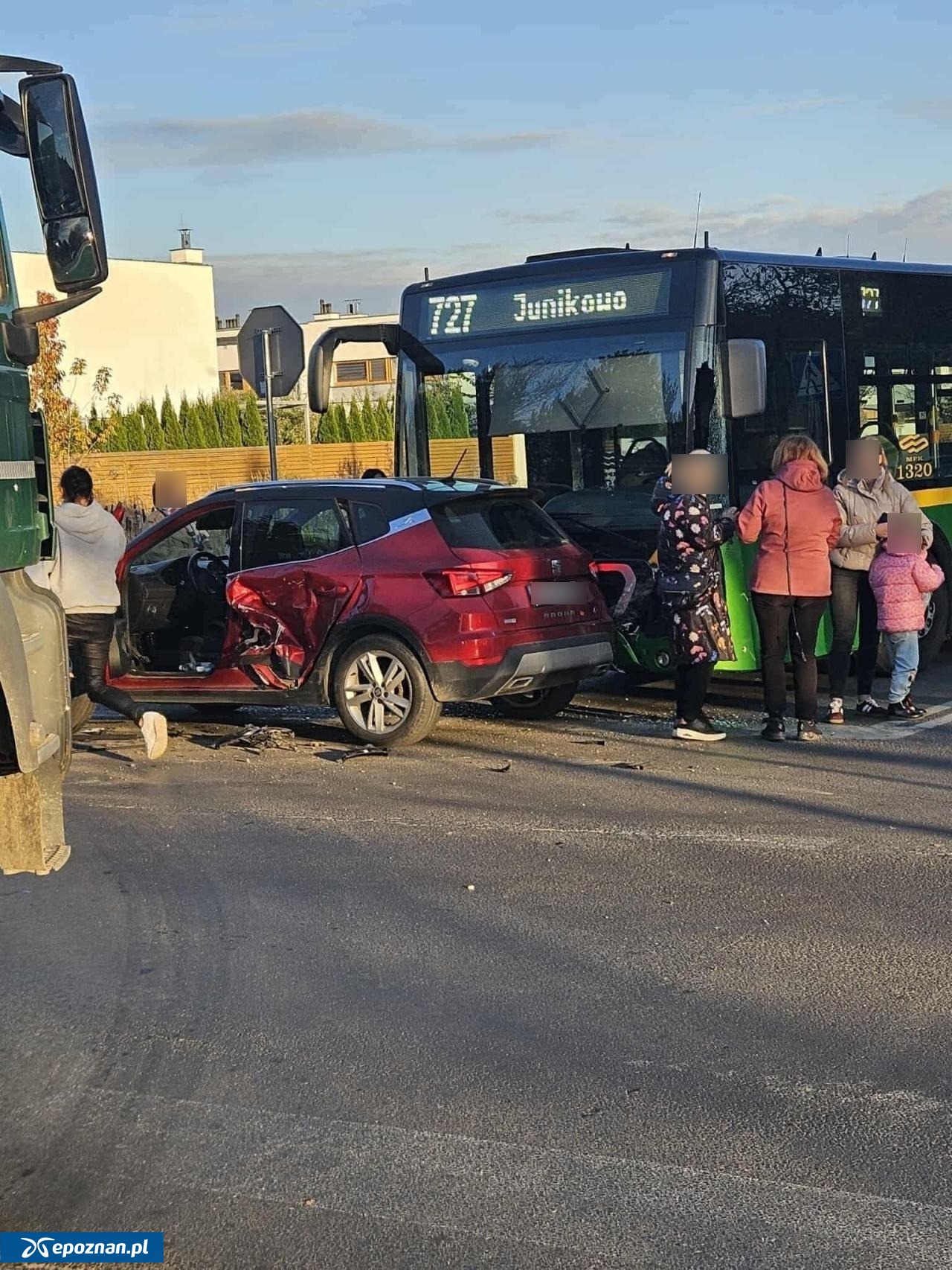 O sytuacji redakcja epoznan.pl została poinformowana przez Czytelnika - Stłuczka w Dąbrówce, uszkodzone są dwa auta. Autobus MPK uczestniczył w kolizji.