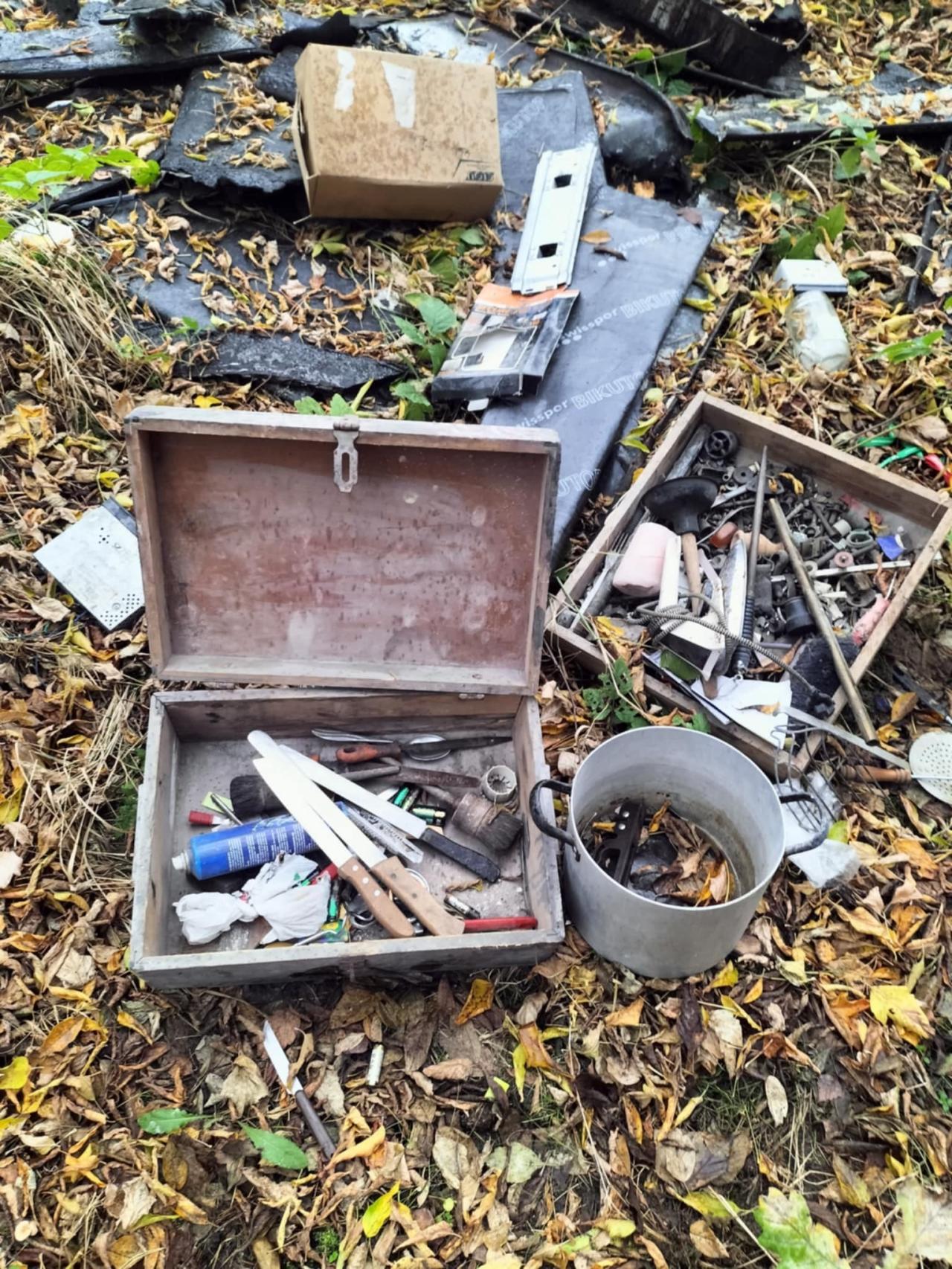 Wybrał się na grzyby w powiecie międzychodzkim (okolice miejscowości Kobylarnia, gmina Sieraków). Był zniesmaczony tym, co tam znalazł. To skrzynia, ale bynajmniej nie skarbów. W drewnianej skrzyni były: komplet noży, pianka w tubie i akcesoria do malowania.