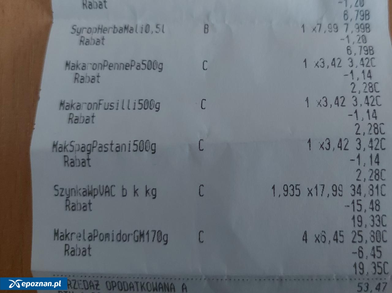 - Ostatnio na łamach epoznan.pl czytałem o zaniżonej wadze fasoli, a teraz taka sytuacja w sklepie Biedronka. Kupowałem szynkę, waga na opakowaniu wynosiła 2,8 kg, a waga odczytana wyniosła 1,9 kg. Całe szczęście, że kasowałem się w kasach samoobsługowych i pojawił się błąd wagi. Zawołana obsługa sklepu wprowadziła szynkę z kodu na poprawną wagę. W zwykłej kasie pewnie obsługa by nie zwróciła uwagi i tym sposobem byliśmy oszukiwani - opisuje nasz Czytelnik.