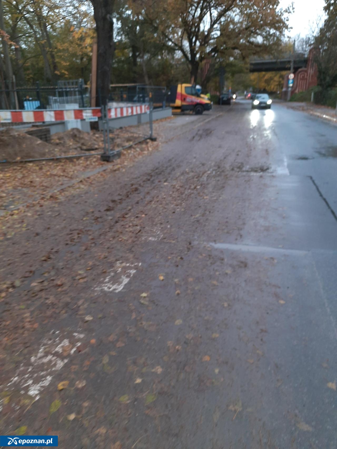Poznańska ulica tonie w błocie. "Interwencje skutkują postawieniem praktykanta z miotłą."