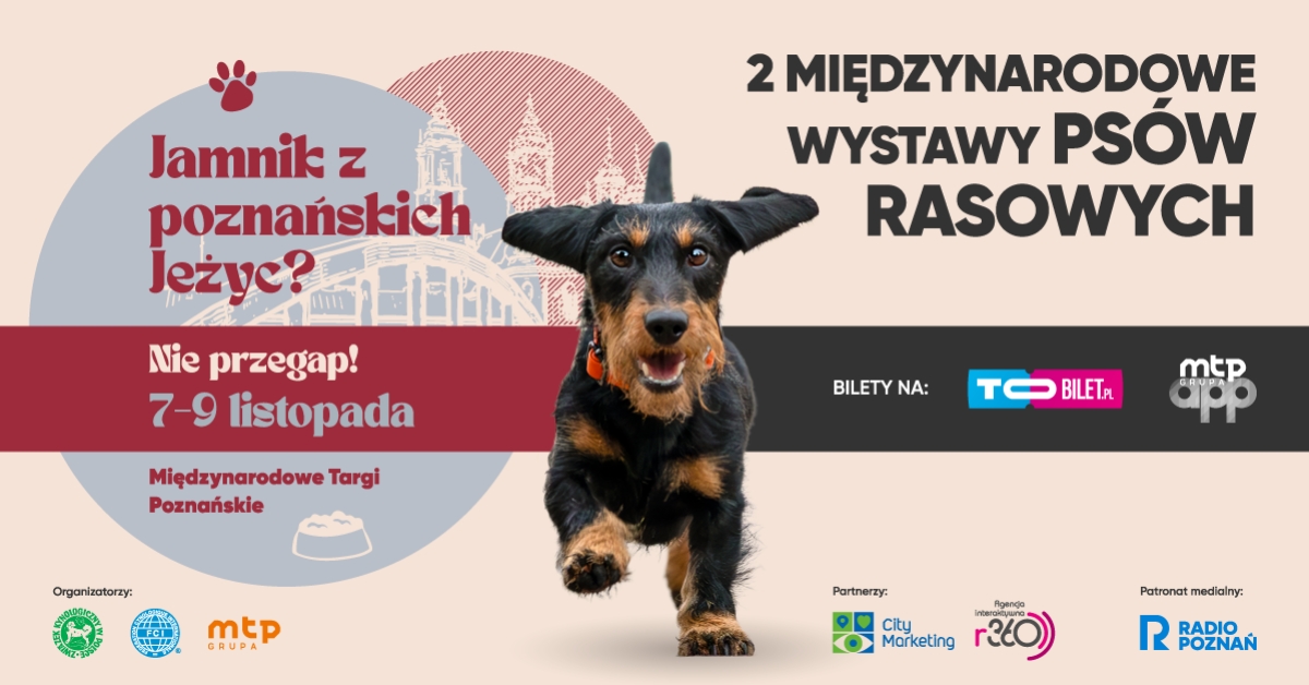 Już 7-9 listopada na Międzynarodowych Targach Poznańskich odbędą się 2. Międzynarodowe Wystawy Psów Rasowych. Przez trzy dni miasto stanie się prawdziwą "psią stolicą Europy", a hale Międzynarodowych Targów Poznańskich wypełnią się tysiącami czworonogów z całego świata, które powalczą o prestiżowe tytuły i nagrody. W programie m.in. zawody dog dancing, wystawy klubowe, finały Best in Show, a także pokazy psów pasterskich i policyjnych.