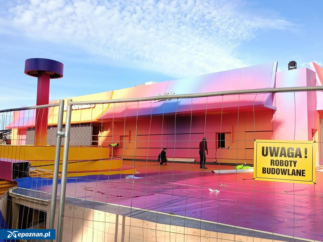 Trwają prace przy restauracji McDonald's położonej przy ulicy Hetmańskiej 100 w Poznaniu. Od kilku dni obiekt pokrywają kolorowe panele, a przy budynku zaaranżowano barwną przestrzeń. Wszystko z okazji powrotu do menu kultowego Burgera Drwala. To już tradycja, że sezonowy powrót kanapki jest powiązany z unikatowym wyglądem wybranej restauracji sieci w Polsce.