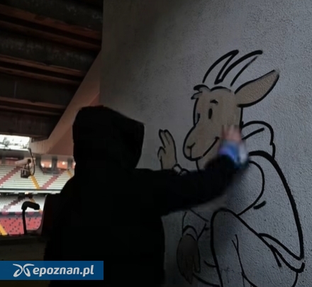 To rzadkość, poznański artysta nagrał akcję malowania koziołka na stadionie przeciwnej drużyny.