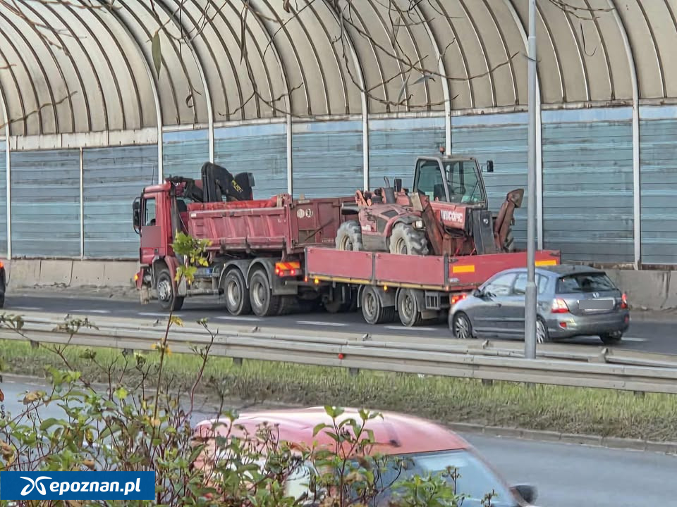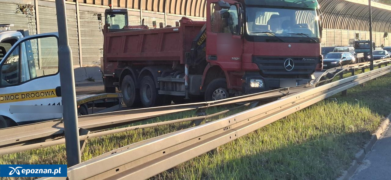 Doszło w tym miejscu do kolizji z udziałem samochodu ciężarowego. Pojazd stoi w poprzek drogi, blokując przejazd. Szczegółów zdarzenia na razie nie znamy. Wstępnie nie mamy informacji, by ktoś był poszkodowany.